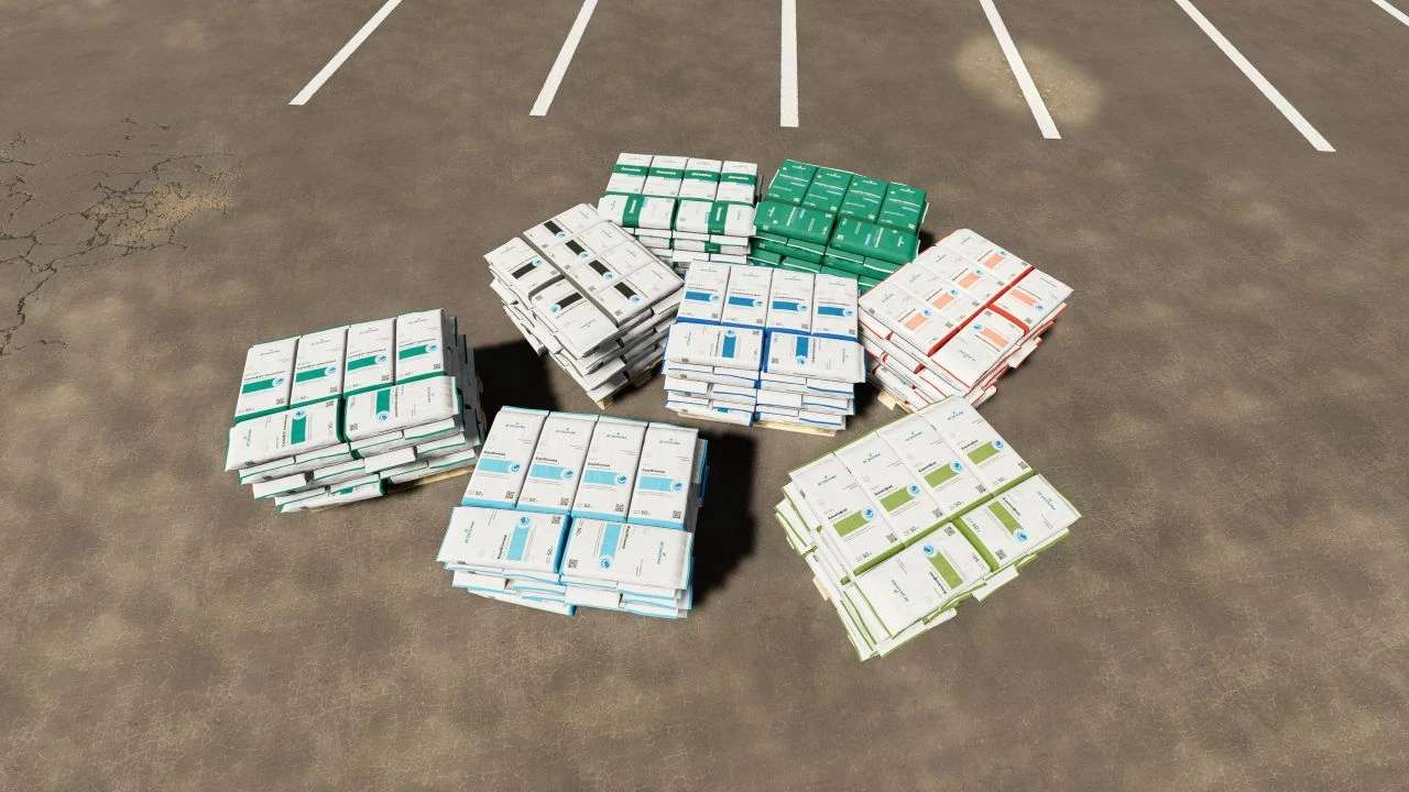 The pack includes: liquid and granular fertilizers, herbicides, seeds, animal feed, silage additive, lime.