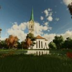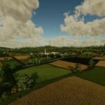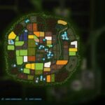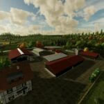 The map is intended for small to medium-sized machines. It has a main courtyard with a large cowshed, a medium-sized sheepfold and a small chicken yard.
