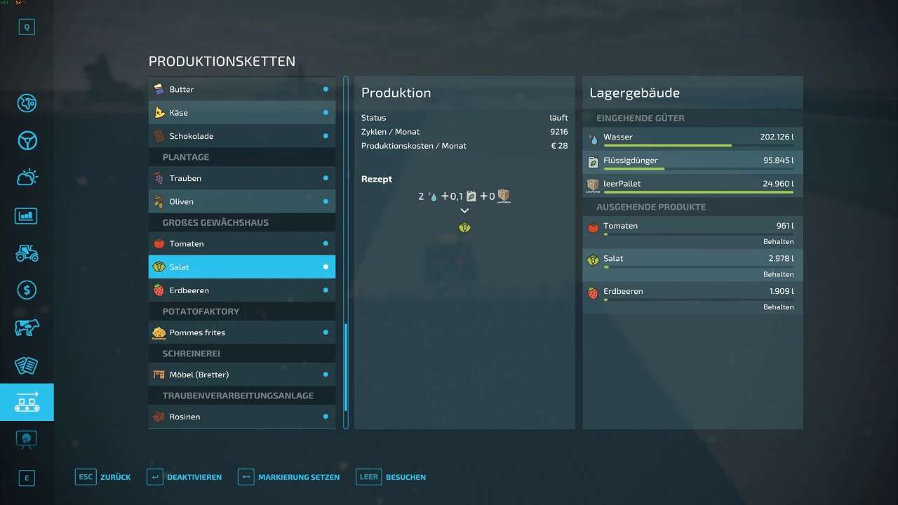 Input: water – liquid fertilizer – empty pallets