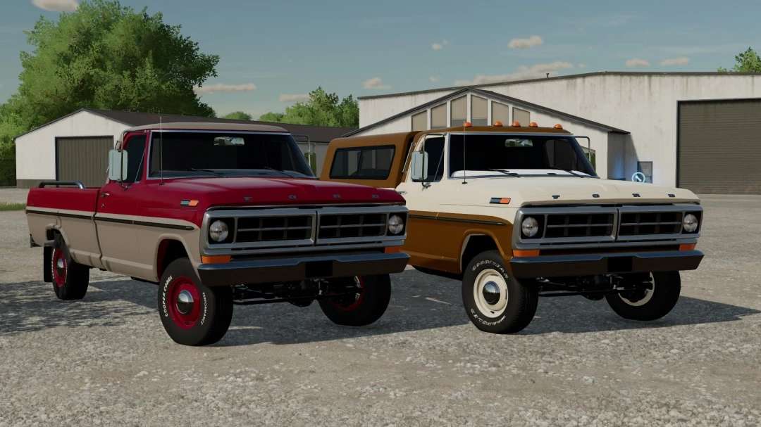 The Classic FS19 f150 makes its return in full stride with updated physics, some new wheels, and much-needed tuning! As from the previous version, all of the classic farm truck options have made their return with the topper now also being functional! the powertrain consists of either the 300 Inline 6 or the slightly larger 302 v8 in both a 4 speed automatic or 4-speed manual!. The truck color pallet has been revised to some of the best colors I’ve attempted to make over the past 3 years so enjoy the fresh looks of this ride! There are now 3 new sets of wheels and one set of tires that have made their way to the vehicle with two being from the 90’s F-Series and two being from some new models! If you want a minimalist good looking ford farm ring then look no further!