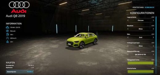 – Choice of main color, design color and interior color