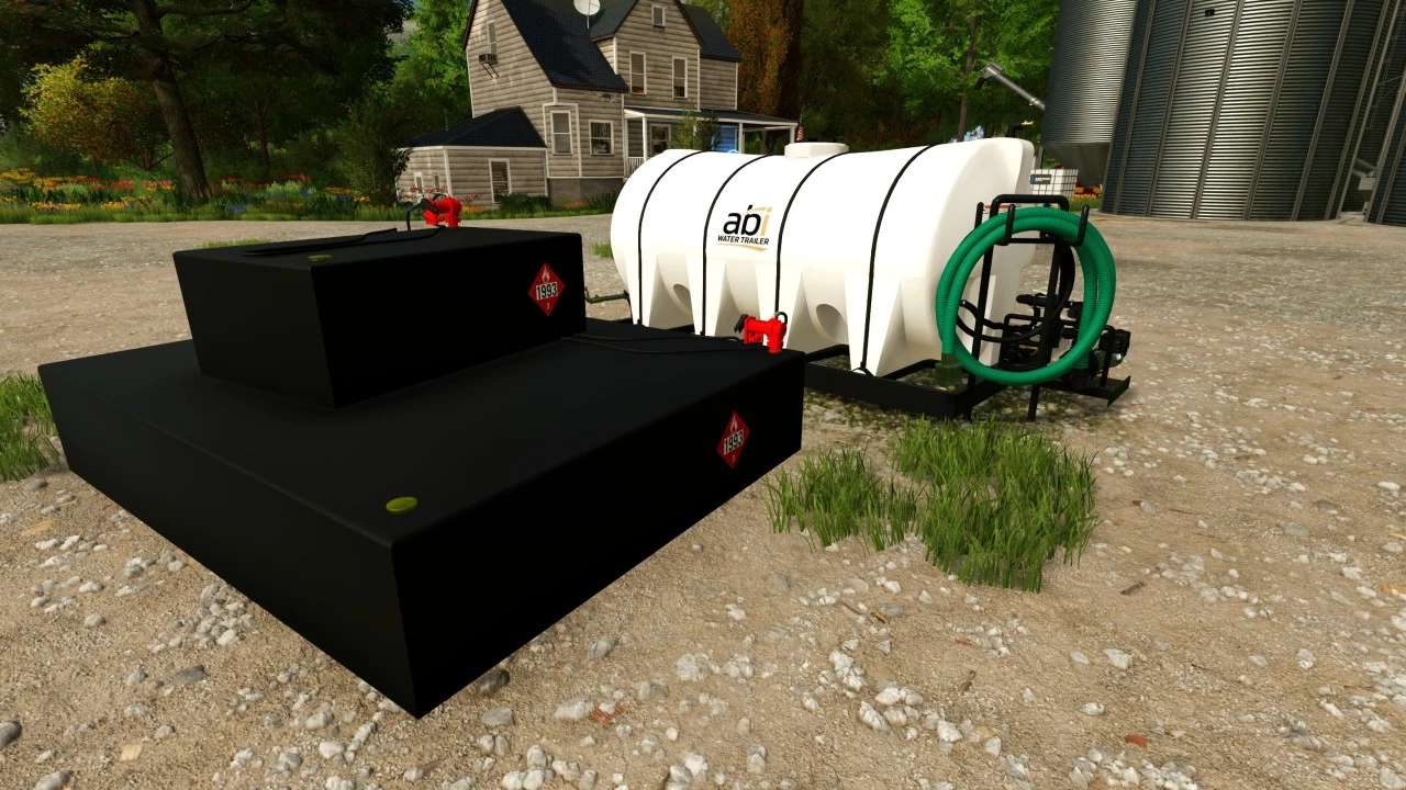 Addon fuel tanks and water tank that are attachable to flatbed. Will need a Strong Farmer mod or use a crane to lift addons onto flatbed.