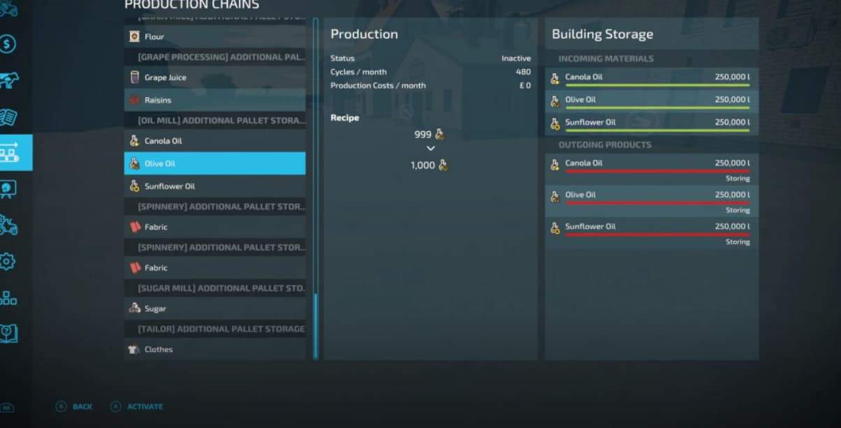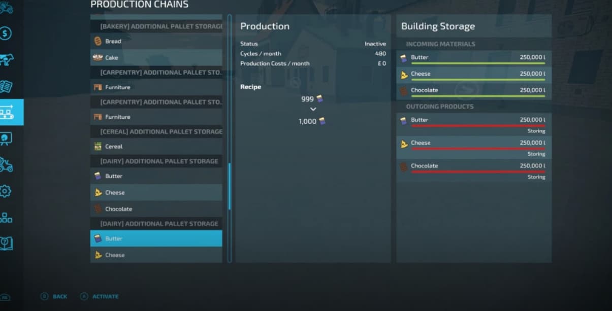 To compensate for this I have setup the production part of this mod to take for example 999 L and produce 1000 L when you activate the production cycle for that particular product.