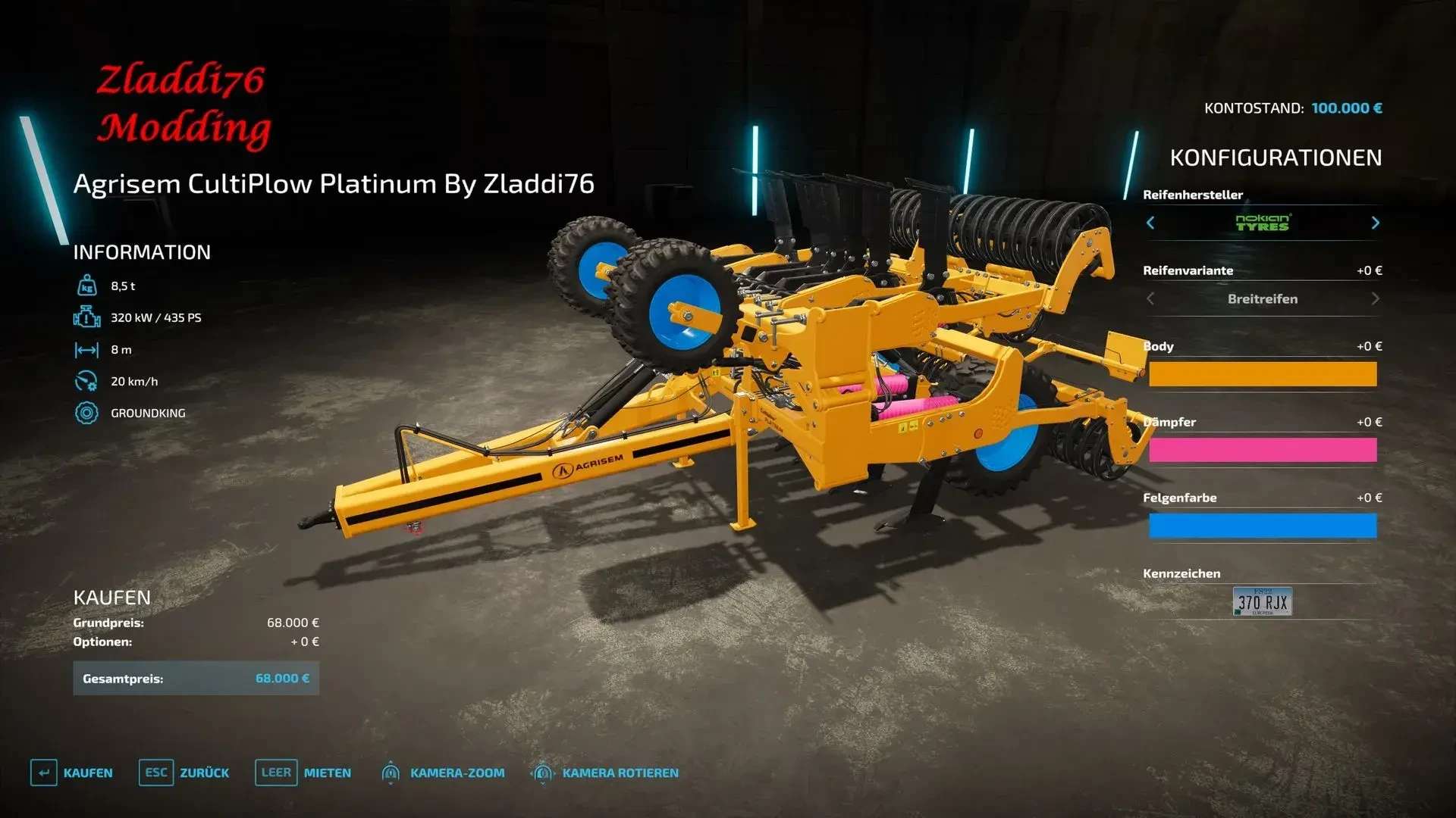 The Agrisem CultiPlow Platinum Multicolor Nokian Bereifung in Farming Simulator 22 is a versatile and powerful plow designed to improve soil quality and prepare fields for planting. Equipped with Nokian tires, it provides excellent stability and durability, even on tough terrain. The Multicolor option allows for full customization, so players can personalize the plow’s appearance to match their farm equipment. With its robust build and efficient design, the CultiPlow Platinum is an essential tool for any farmer looking to boost productivity and enhance their field preparation.