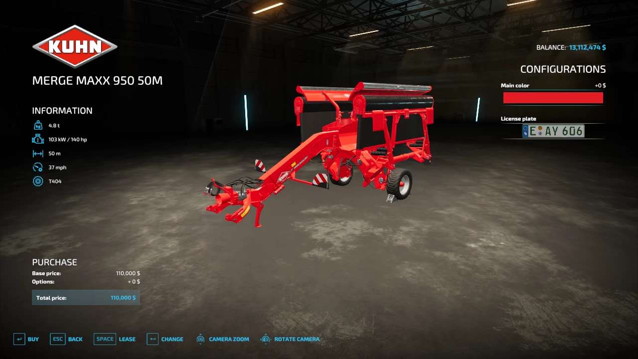 FS22_mergeMaxx95050M: increased working speed, 50m working width