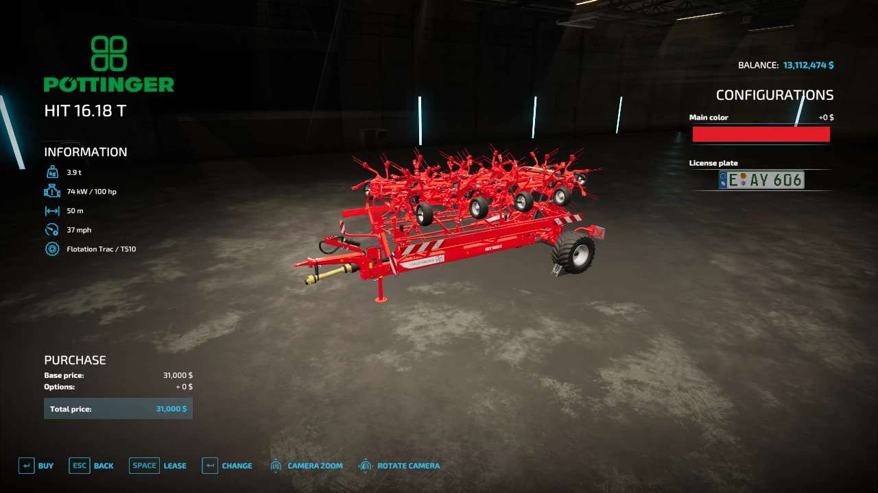 FS22_hit1618T50M: increased working speed, 50m working width