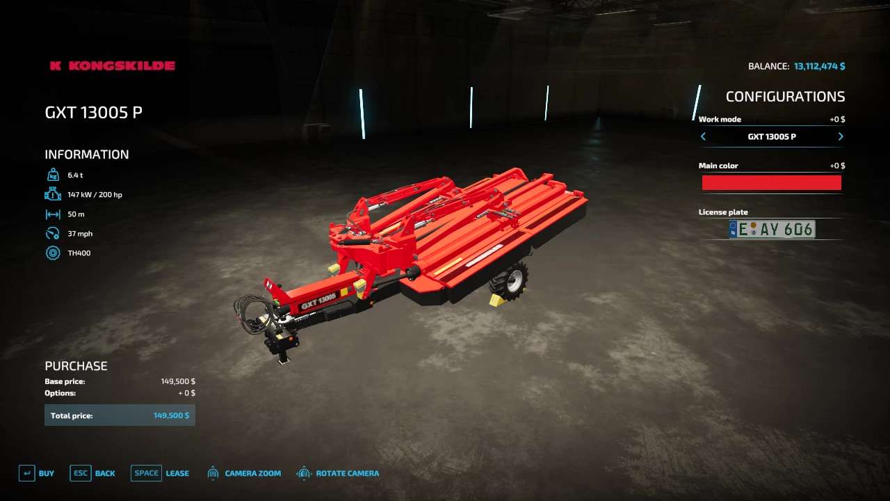 FS22_gxt13005P: increased working speed, 50m working width