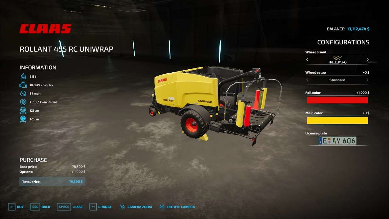 FS22_rollant455Uniwrap: increased working speed, Bales capacities increased for each bale type, wrap colors added