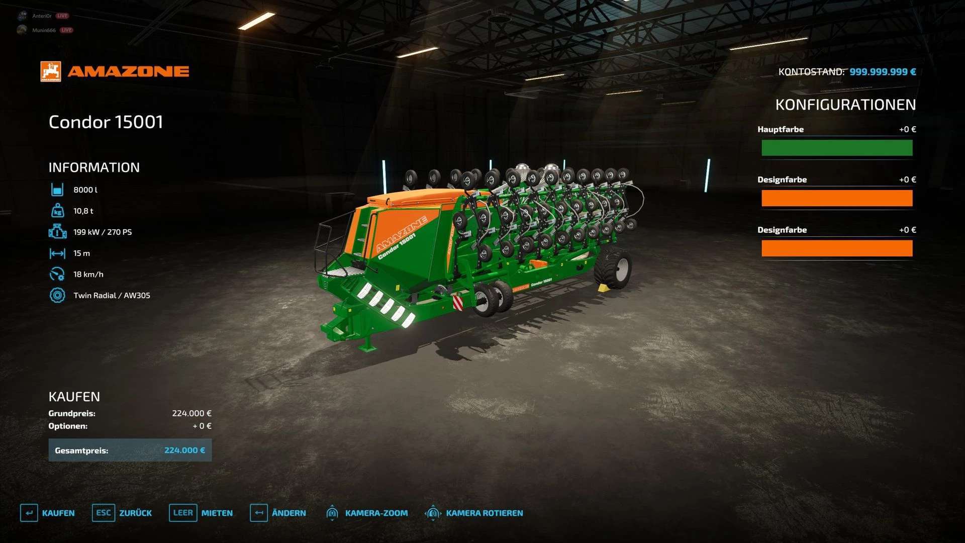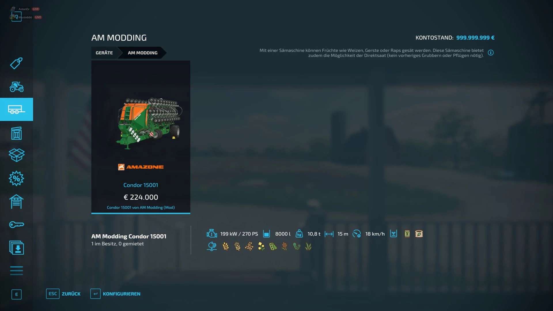 Now we have converted the Amazone Condor 15001 for you from the LS19, so that we finally have a large no-till seed drill in the LS22.