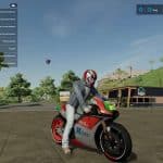 Optionally with helmet or without. (A short haircut is recommended with a helmet). Recommended but also without a helmet from the motorcycle and instead the helmet from the game.