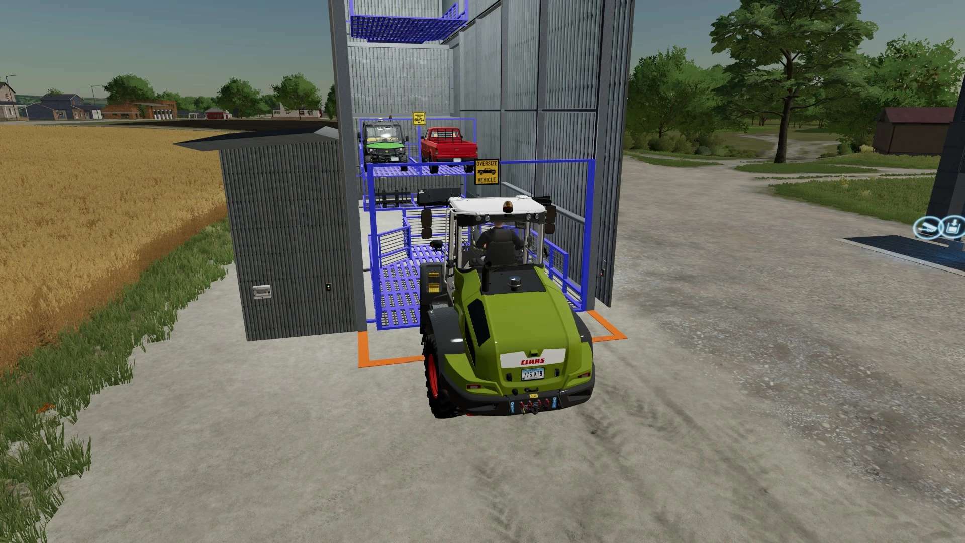 1 oversized vehicle on the 3rd rack and a semi tractor on the 4th rack.