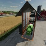 A nice narrow, yet high building holds small tools on the first rack.