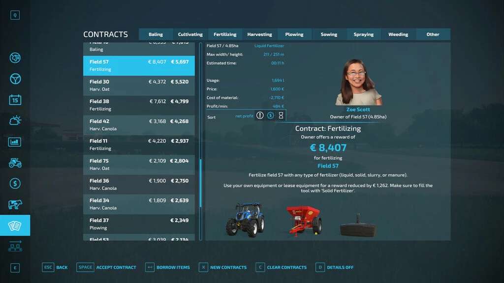 “Should I take those three fertilizer missions, or rather the 2.3 ha potato harvesting contract?” “How much liquid fertilizer will I need for this job?” If you ever asked yourself questions like these, this mod will help to find the answers.
