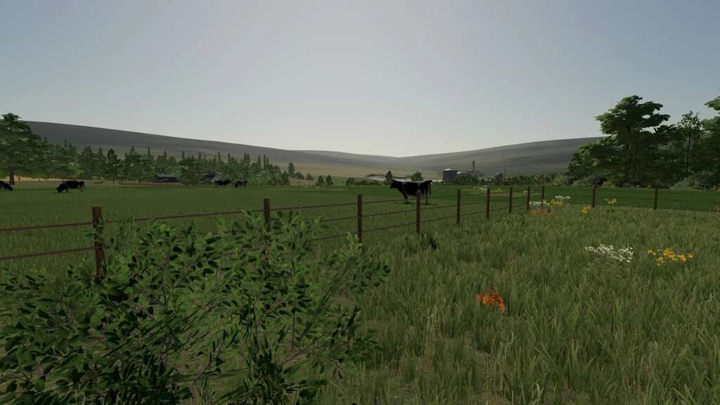 You start the game on the main farm, which consists of cows and chickens. The horses, pigs and sheep will be displayed on the map as soon as the land is purchased.