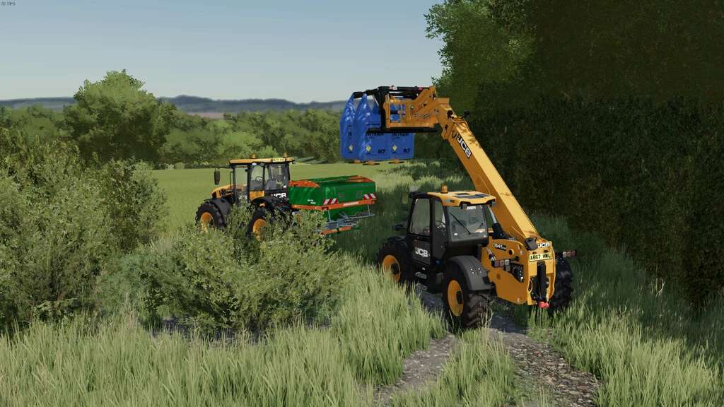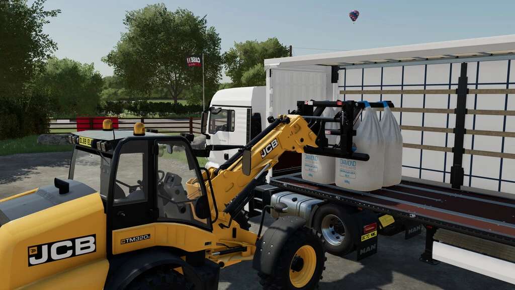 This pack contains a JCB Telehandler with a Q-Fit bracket and a Cherry Bag Lifter, which will lift 4 base game bags. The Q-Fit Bracket is JCB’s custom bracket and offers no advantage in Farming Simulator, but is a cool feature for people to use should they want to.