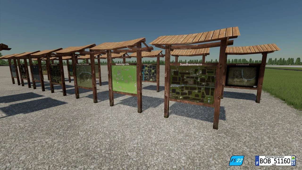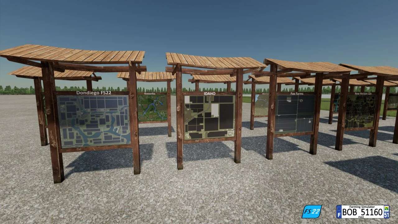 Hello everyone today I present to you, the FS22 City Plan version, I told myself that a map plan was missing in the game and so here is the plan for your maps, for the moment there are only 17 card plans, more to follow. Let me know the name of your card if it is not on the list and I will add it to the update, for more information see the attached photos thank you, and good luck to all. BOB51160.