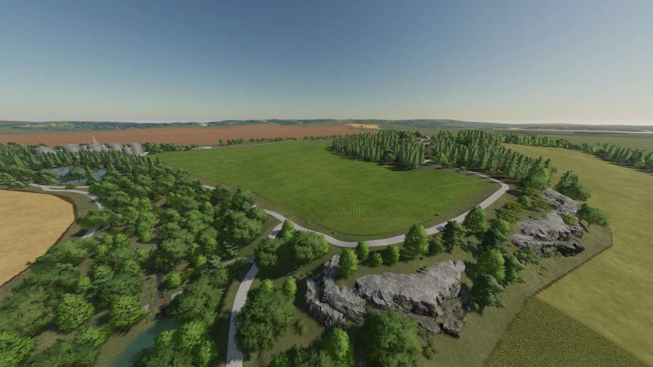 The main focus of the map are the large and wide fields to push the big machines to the limits, especially in multiplayer. However, to ensure everyone’s appeal, the map has also been adorned with smaller to medium-sized squares. Between the vivid and varied pieces of forest and arable land, the cultivation of wine and olives should not be missing in the farming simulator 2022, so scattered wine and olive plantations were created. A large part of the production chains were of course integrated into the map. If this is not enough, there is enough space to place buildings yourself.