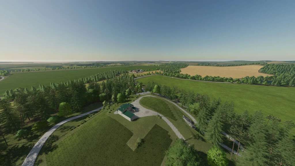 The main focus of the map are the large and wide fields to push the big machines to the limits, especially in multiplayer. However, to ensure everyone’s appeal, the map has also been adorned with smaller to medium-sized squares. The map has 13 fields, 9 large forest areas and six ponds.
