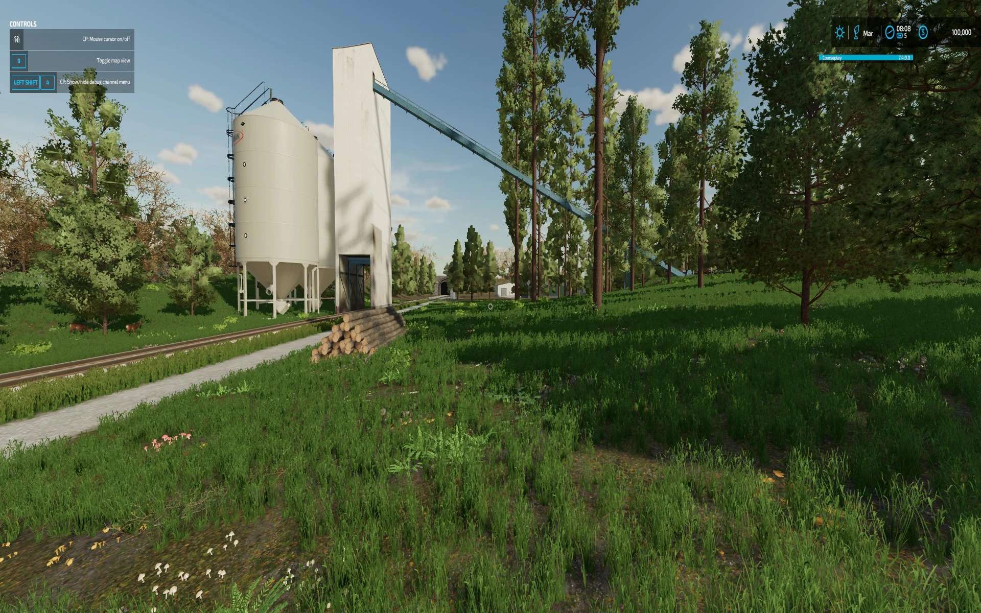 Several sell points have been added and the train was reconfigured to but more usable as a transport or sale option. Row crop soybeans, maize, and peas are still in the map, but now there are some supporting planters embedded for you to use. Some of the buildings are different and all the equipment is stuff I use on my maps when I am playing.
