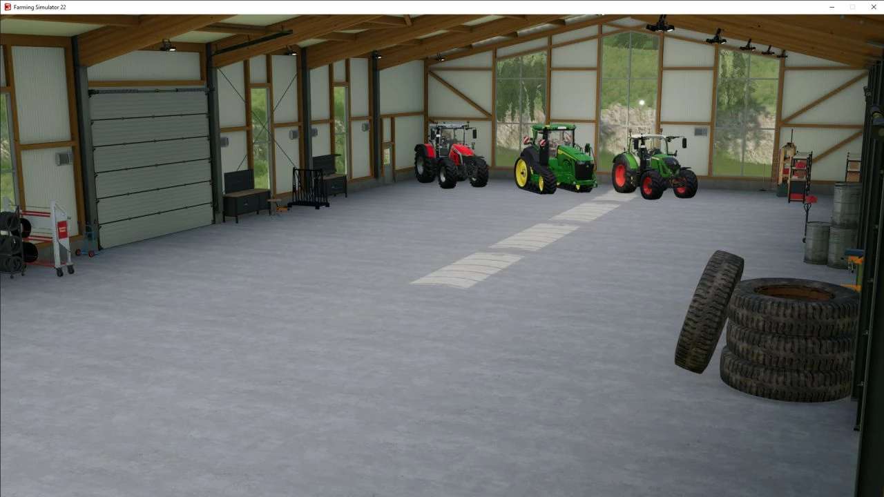Hey guys, as a thank you for the 650 subscribers on YouTube, there is now my first own mod, which you will later also need for my Polarbergen map. This is an agricultural machinery hall that serves as a workshop and an exhibition hall. The hall can be accessed by all ORGINAL LS vehicles and there is plenty of space for many vehicles. The hall has 3 gates at the front and 1 gate at the back. It is fully illuminated and also serves very well for RP projects.