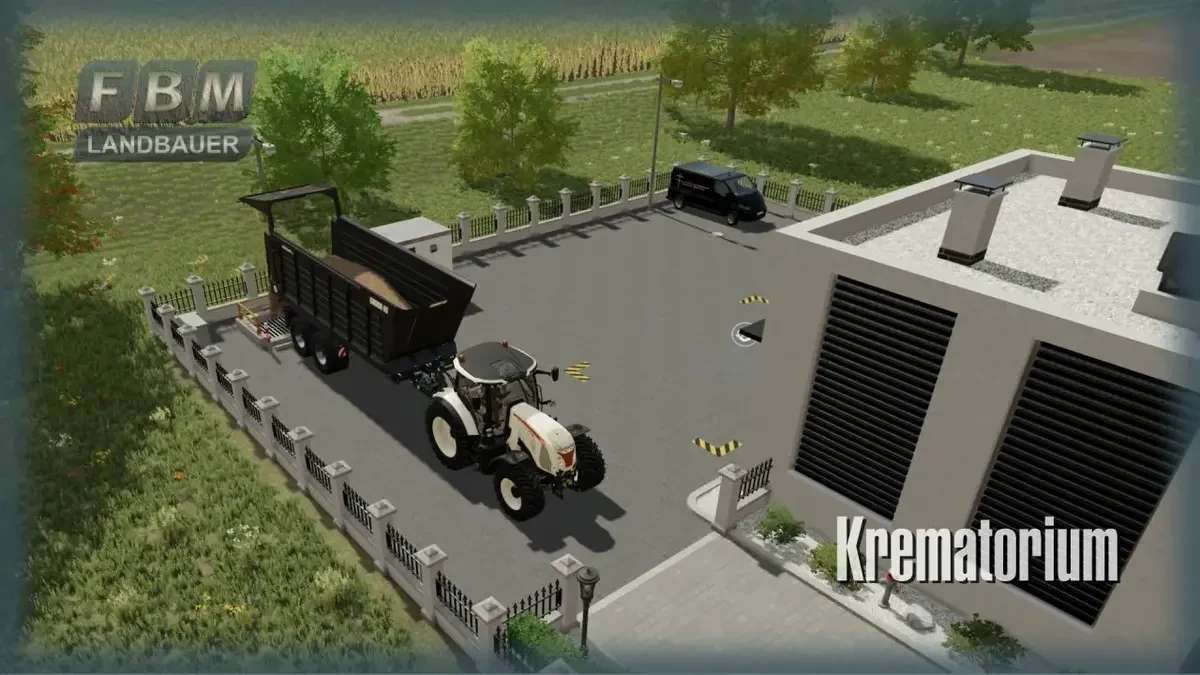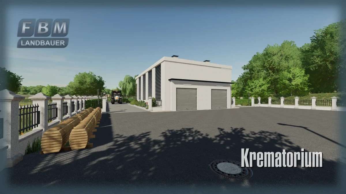 The goods acceptance times for boards, fabric and wood are at the rear roller doors from 11:00 a.m. to 4:00 p.m. Wood chips, silage and straw can be unloaded at the chute in the rear courtyard during the opening hours of the gates, from 7:00 a.m. to 8:00 p.m. There is also a granite block with illuminated lettering for decoration. Around the terrain, the ground may need to be hand painted in landscaping mode.