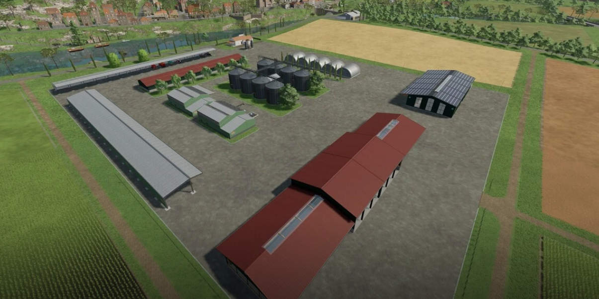 The map now has 99 fields (the largest has 50 ha), a Lohner main courtyard and 4 standard courtyards in the corners and also 4 BGA’s. There are also productions installed on the map that are visually larger on the one hand, but also have more bars (and cost). There is a large cow and sheep pasture for those of you who enjoy raising cattle. The top left fields are for grapes and the top right for olives (but don’t have to). Since the card is still in beta status, my clear recommendation is not to build anything further on it, because productions are still being added and existing products are being expanded. I installed a 4x fermenter/grass dryer at the hardware store, so 4 different players or farms can buy and use them here. No products can be sold in the productions, there are corresponding triggers for this, most of which have already been visually identified. There should also be no orders where stuff has to be carted into productions.