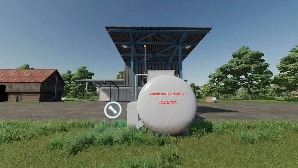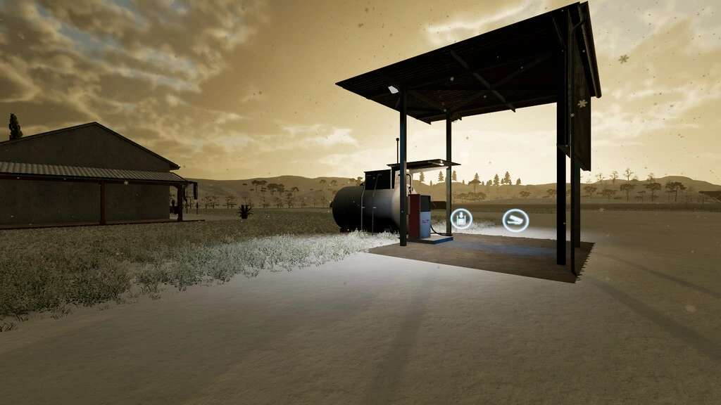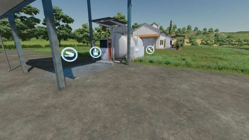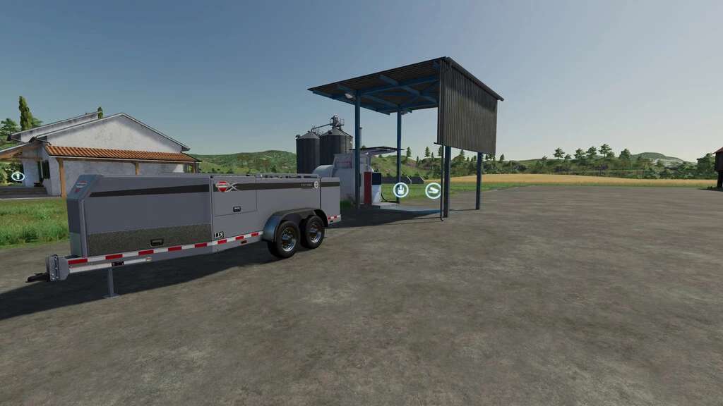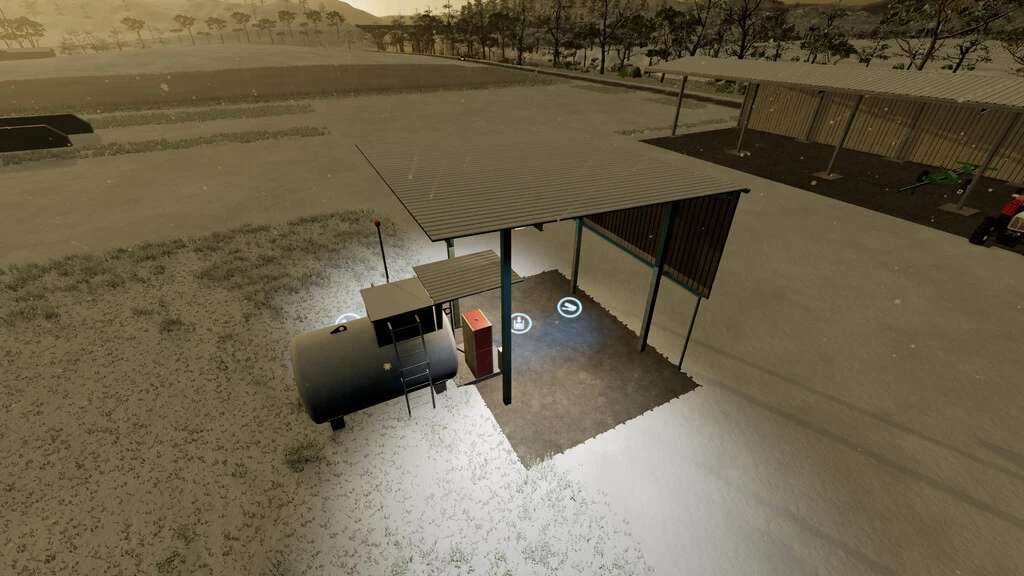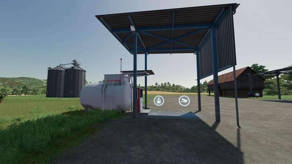 The tank is empty after purchase. Filling either with a trailer or via R (original function), or by assigning the task to the AI Helper – Import and Unload Diesel Tank.