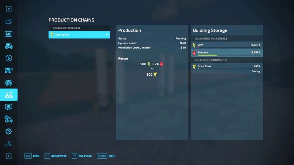 The Dry Corn Addon adds a Corn Dryer, Propane for fueling the dryer, and appropriate storage and purchase containers, as well as a dry corn sell point.
