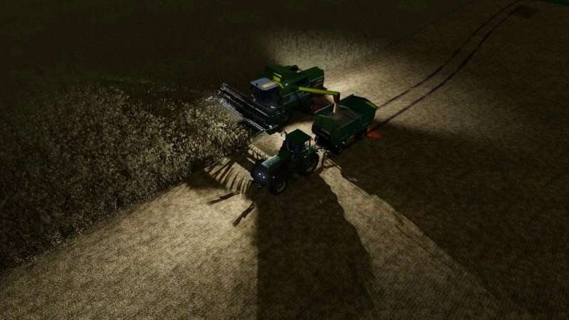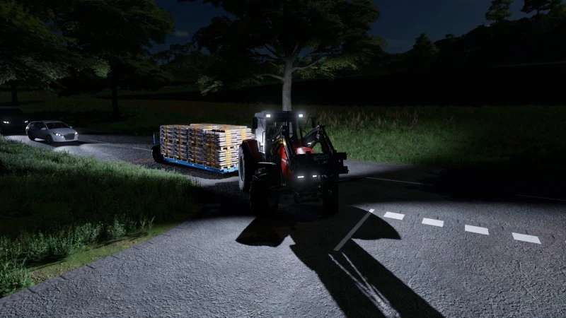 The modification adds dynamic shadows to all vehicles and machines. Shadows for low beam, high beam and work light.