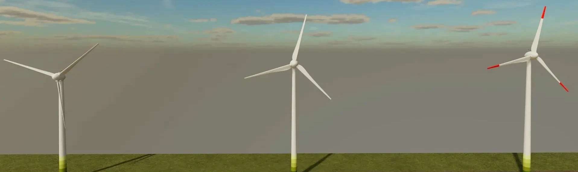 With the latest update, you can switch between the variant with completely white rotor blades or the variant with red blade tips on the E48 60m and the E53 with 73m. For this purpose, a second trigger was added in front of the door at the foot of the tower. The trigger for switching the system on and off was set slightly to the left. The new trigger is oriented slightly to the right. The trigger zones “touch” on the central axis of the door.