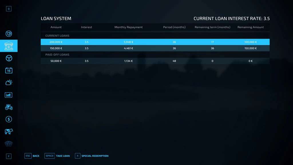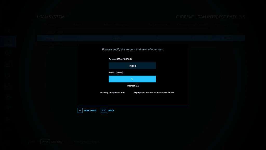 This mod makes the credit system a bit more realistic. However, the standard game credits will be deactivated. If a farm still has a loan, it will be transferred to the new system.