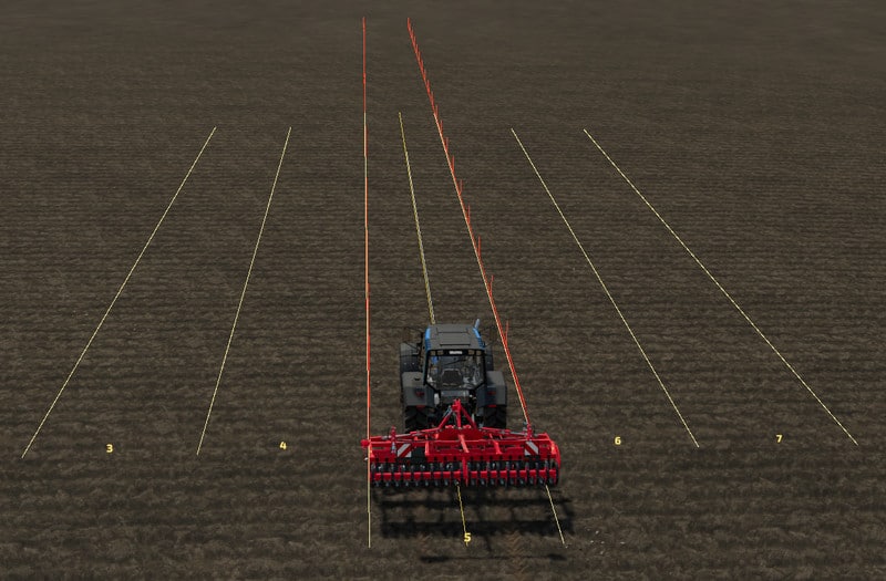Drive to the field with your vehicle and an attachment and turn on the guide lines with RShift+Home.