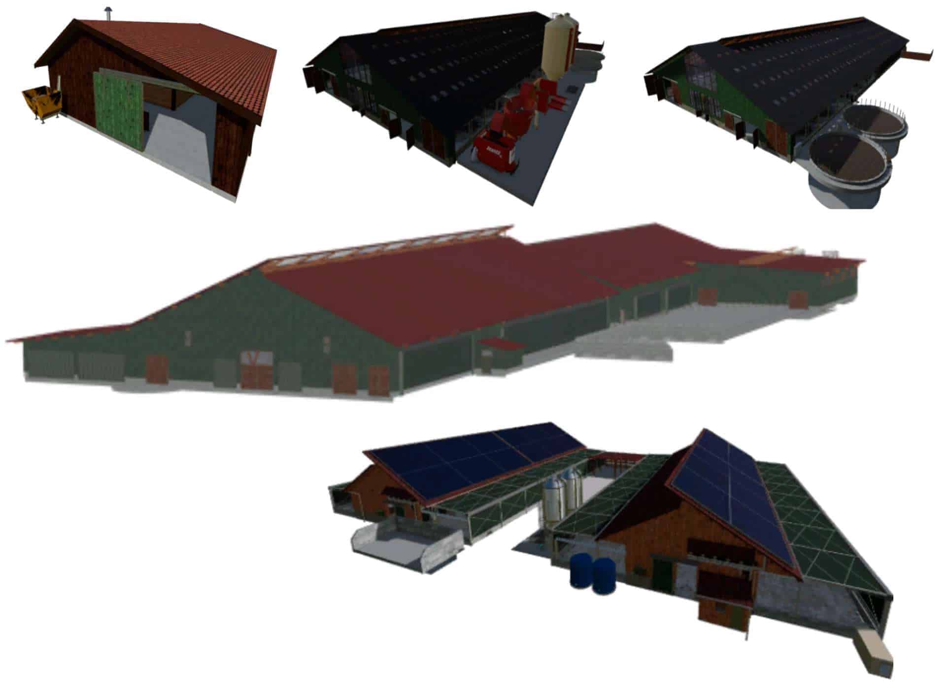 The pack contains 4 stables, a hay dryer, a farm fuel station and a farm silo. More stables will be added soon