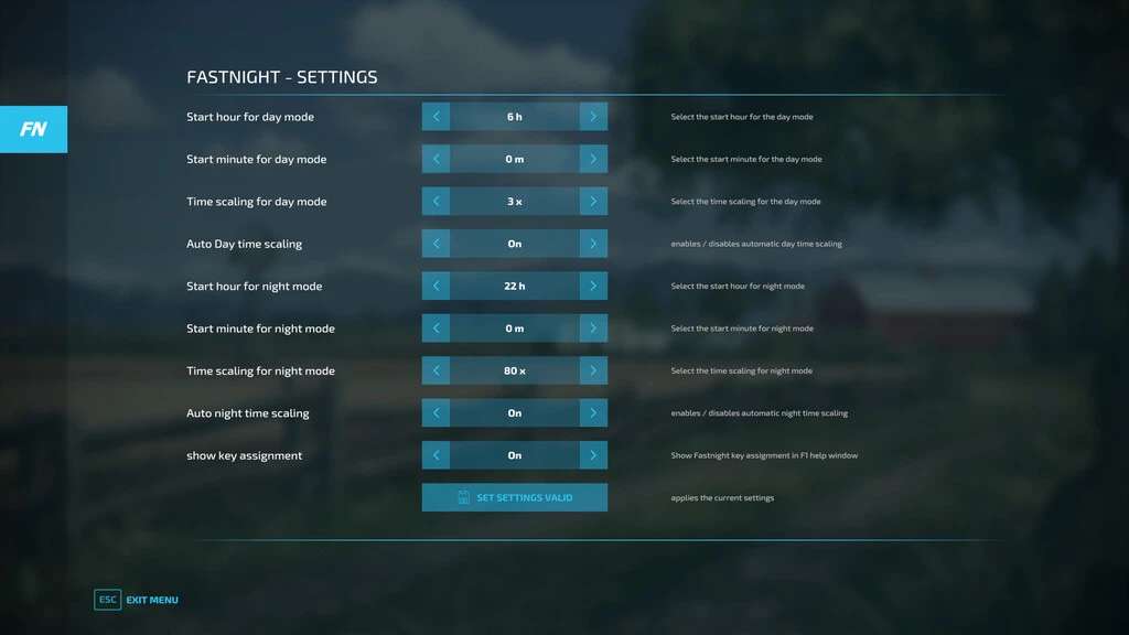 This mod sets the time scale once a morning and once in the evening on a certain time scale!