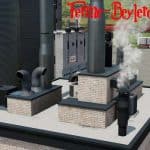Smoke animations installed in the chimneys of numerous buildings.