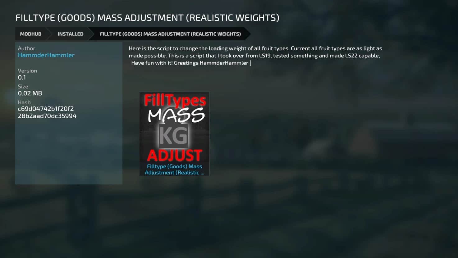 Filltype (Goods) Mass Adjustment (Realistic Weights) v0.1