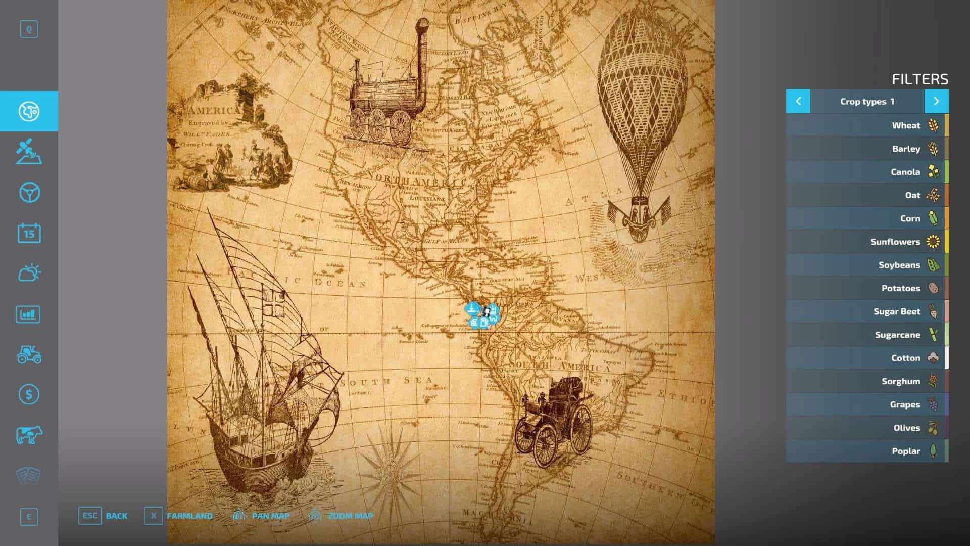 Career mode “New Farmer”: You can see the land you already own by clicking on ‘Land’ on the map.