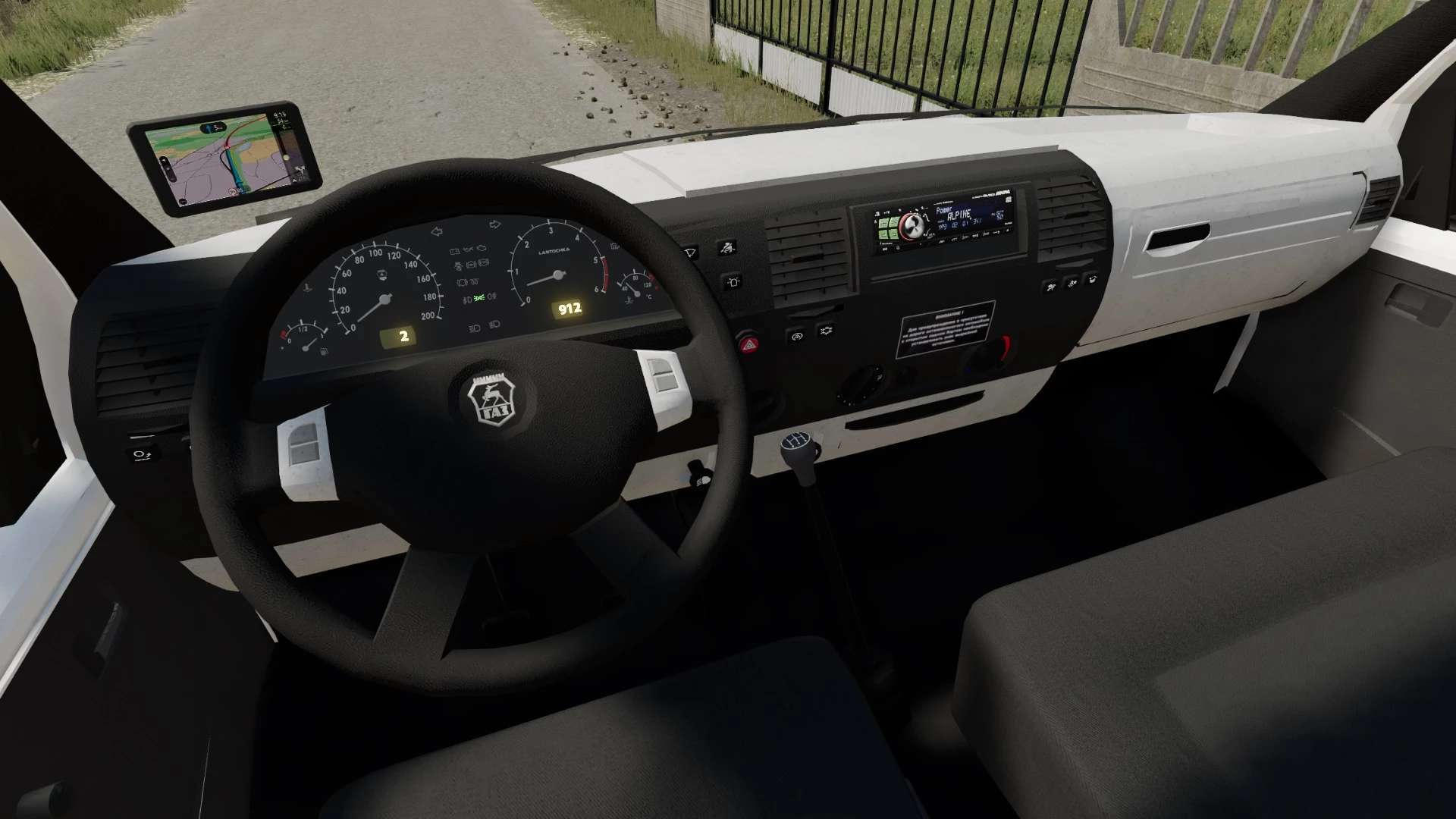 Animated dashboard, pedals, gearshift lever, mudguards