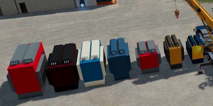 This is a pack of different generators that can be used as loads on trucks and for cranes to lift. The number before the period is the weight in metric tons and the numbers after the first period is the width in meters.