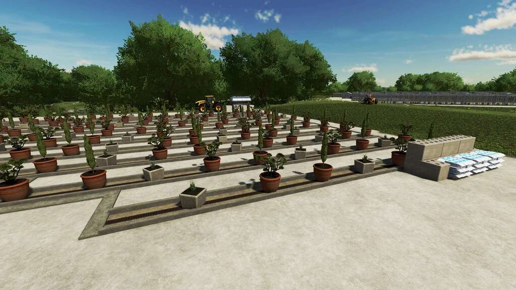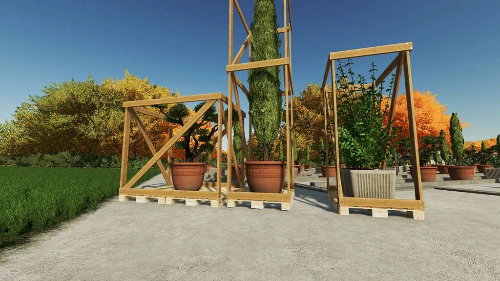 This mod is composed of a point of sale (for new production), a very large greenhouse with the production of lettuce, tomato, strawberry, red cabbage, flowers. A shrub greenhouse (bamboo and aloe vera). Plant production (Cypress, Eucalyptus, Bonsai).