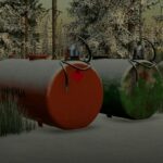 OId-school Hankkija fuel tanks. Contains worn version with color selection, red and green versions with animal-themed paintings and also a new version, which costs more but has a smaller daily upkeep.