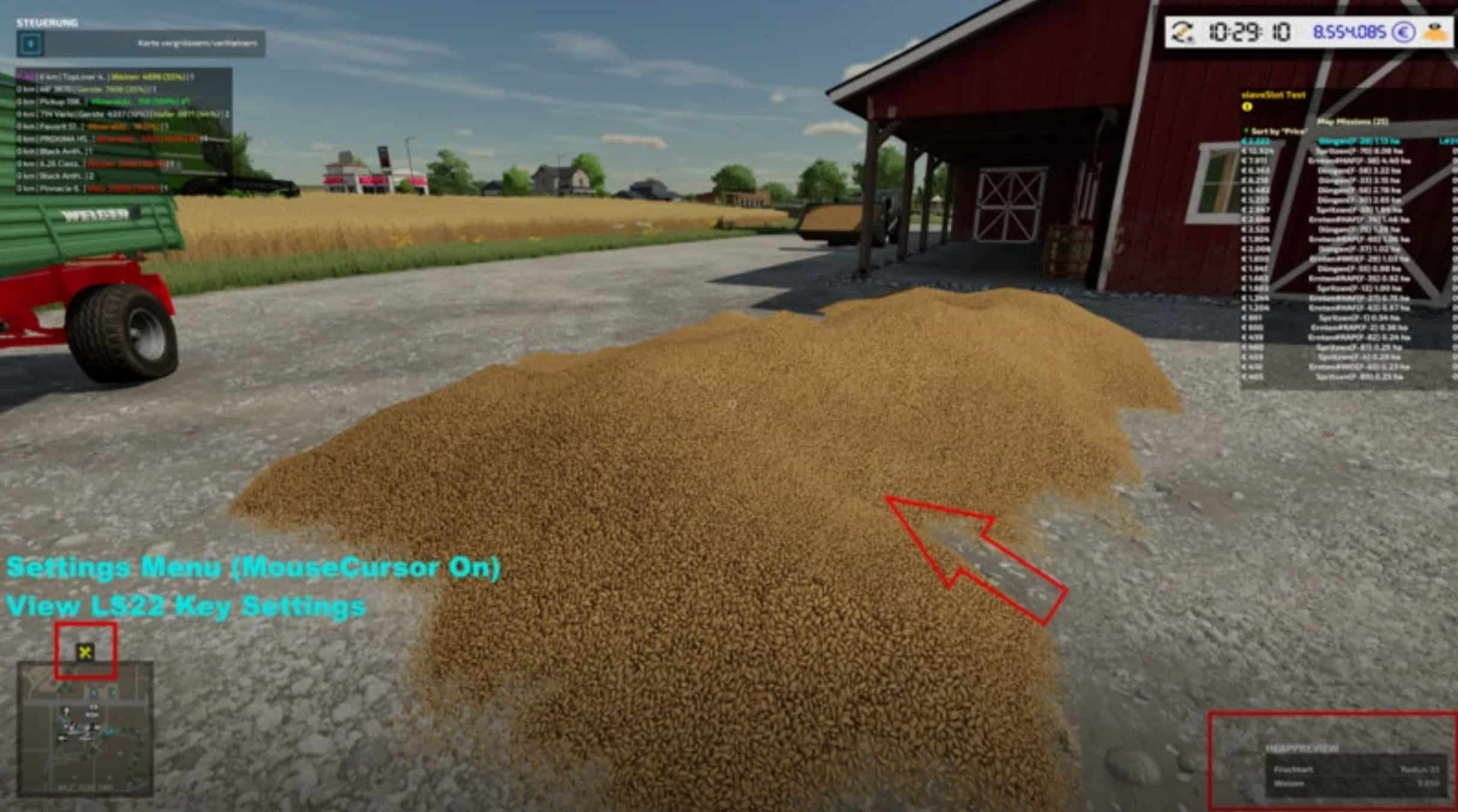 View LS 22 KeySettings for MouseCursor On/Off (Default *F12* for all my mods)