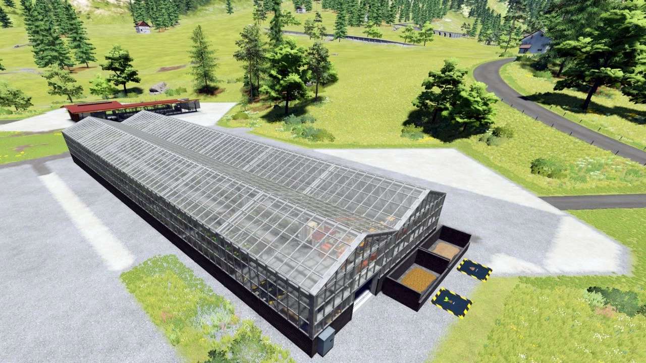 This is realistic version of the greenhouse on industrial scale (made by WES_Mods) that now produce alongside the base-game lettuce, tomato and strawberry, new crops as: melon, watermelon, cabbage, red cabbage, flowers, pumpkin, cucumber, onion and pepper.