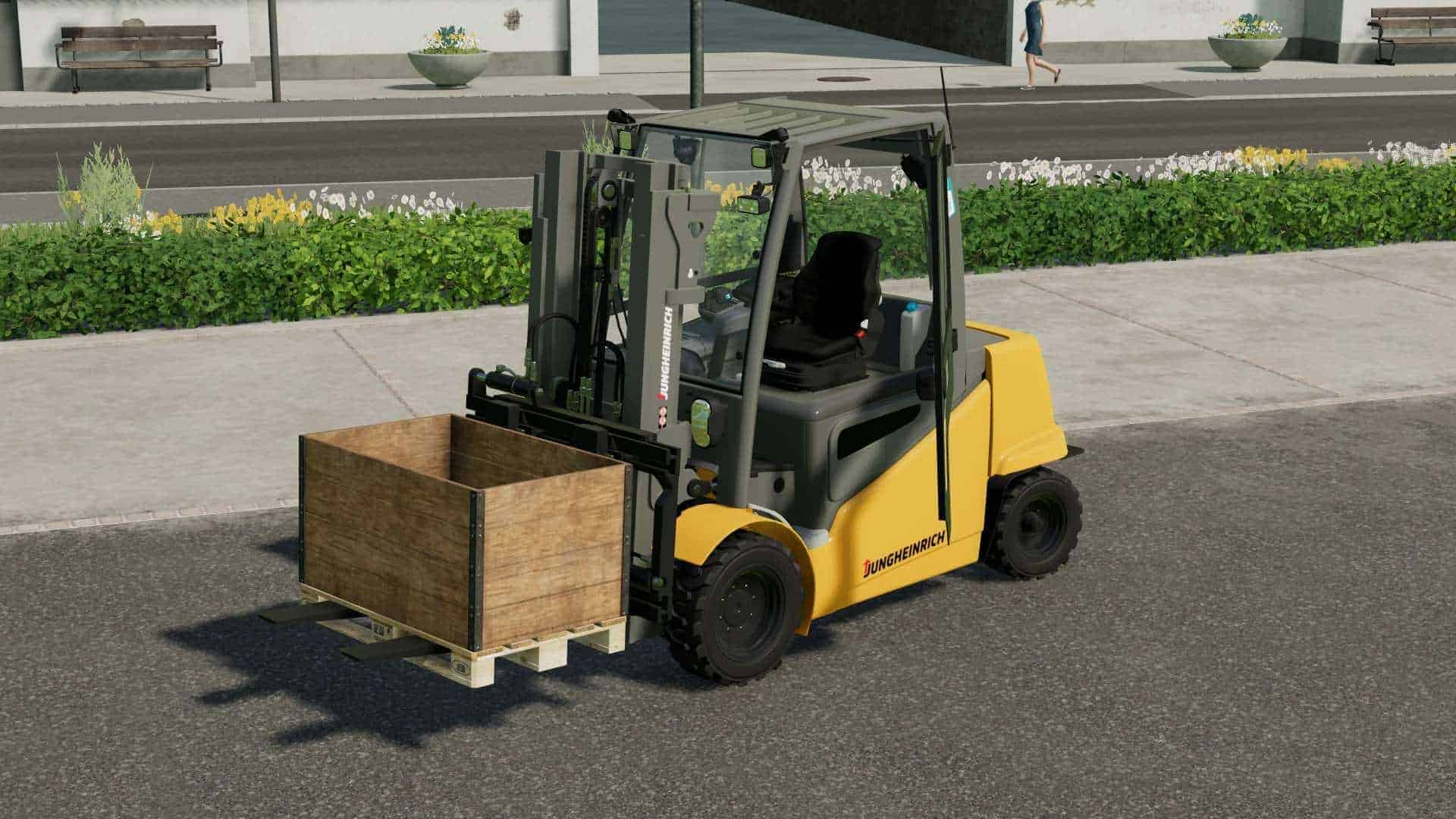 A Jungheinrich EFG S50 forklift from the main game. The forklift was cut out (end merged) and received new functions (door can be opened, seat is adjustable).