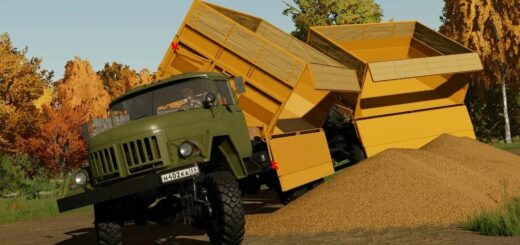 FS22 The dump truck has been updated. Added a trailer. Also, the engine with a gearbox was reconfigured (with and without a divider), traction with speed depends on it. Analog torque set. New engine sounds. The trailer has a drawbar lock. New lighting technology (modified). Gear lever replaced. All settings correspond to the 22nd version.