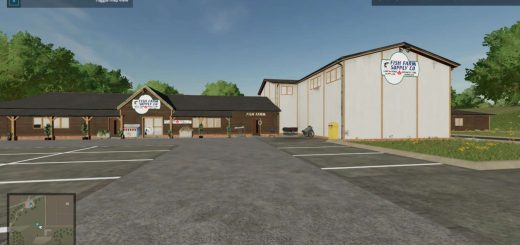 The map is intended for small to medium-sized machines. It has a main courtyard with a large cowshed, a medium-sized sheepfold and a small chicken yard.