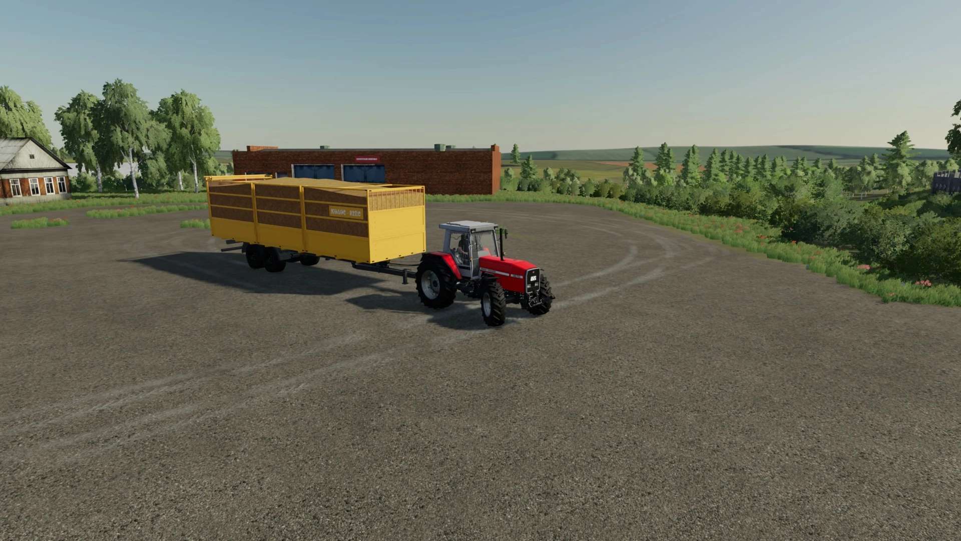 Trailer – straw and grass pick-up from the field (without visual). The pick-up width is 10 meters (I agree that this is cheating, but it is convenient). The body volume is also 92,000 liters. It also gets dirty, worn out, washed and painted. Dynamic hoses and lighting.
