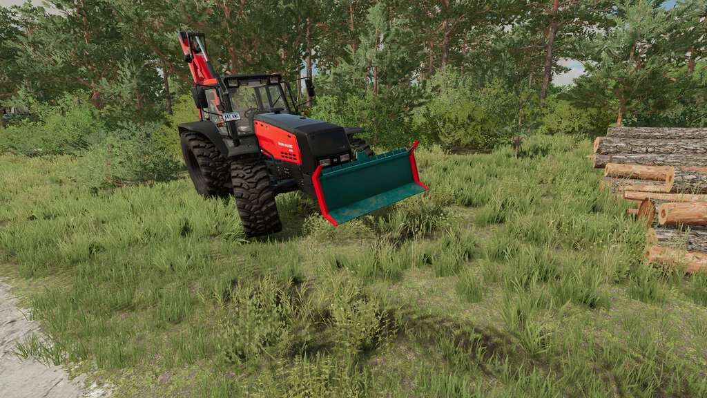 The Logging Blade is used to push tree trunks and chopped material.