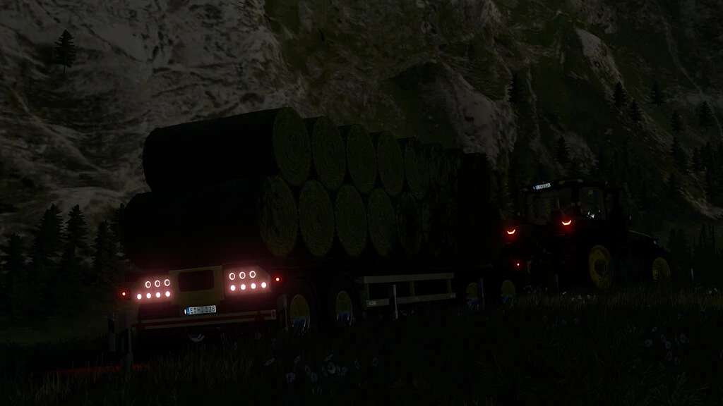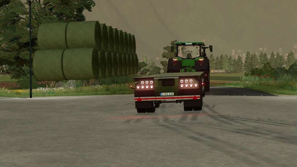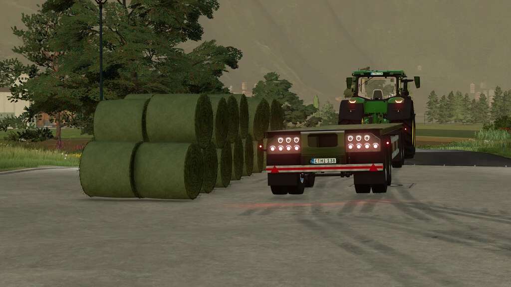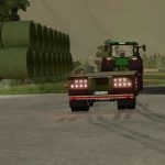 Flatbed trailer for moving bales and pallets. The trailer has a configuration between a standard trailer and autoload.