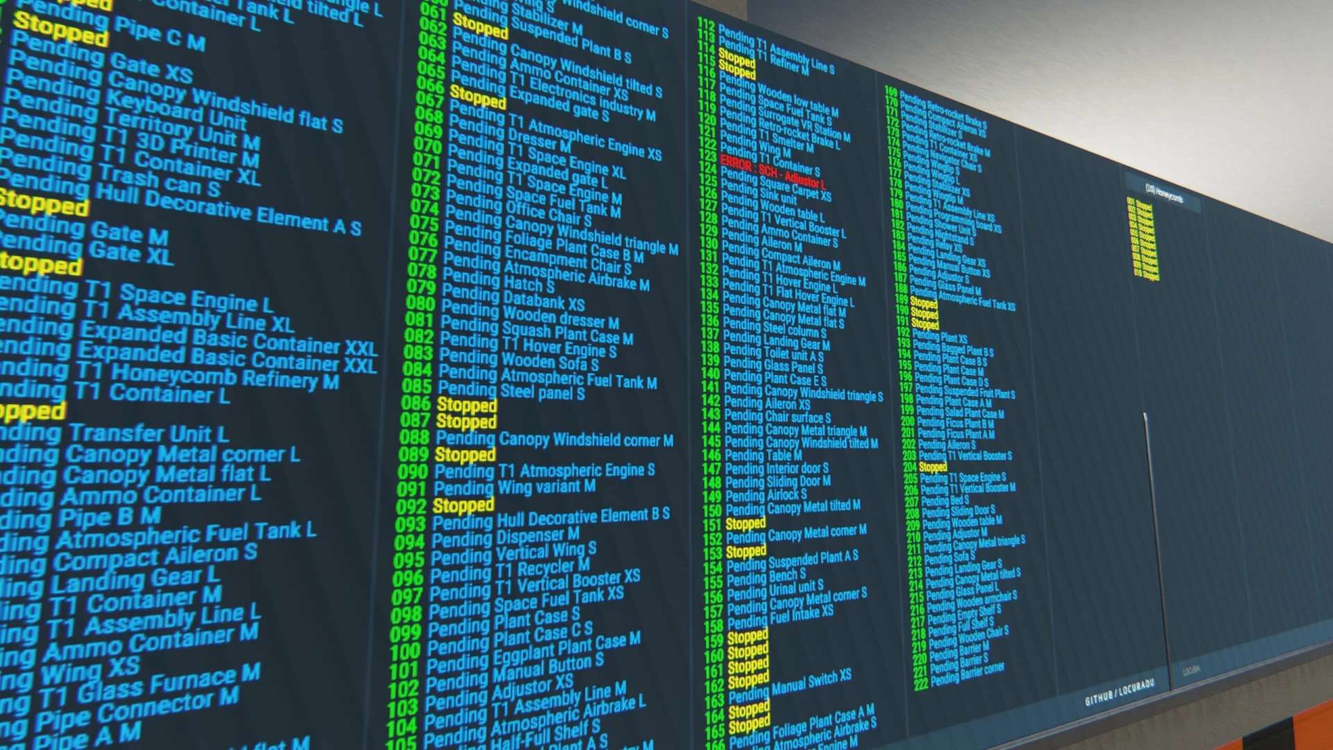 A single board script for displaying all your factory information. This script is helpful for those that dont like using HUDs and can be used on 1 to 9 screens depending on factory size. This version only shows your factory assemblers